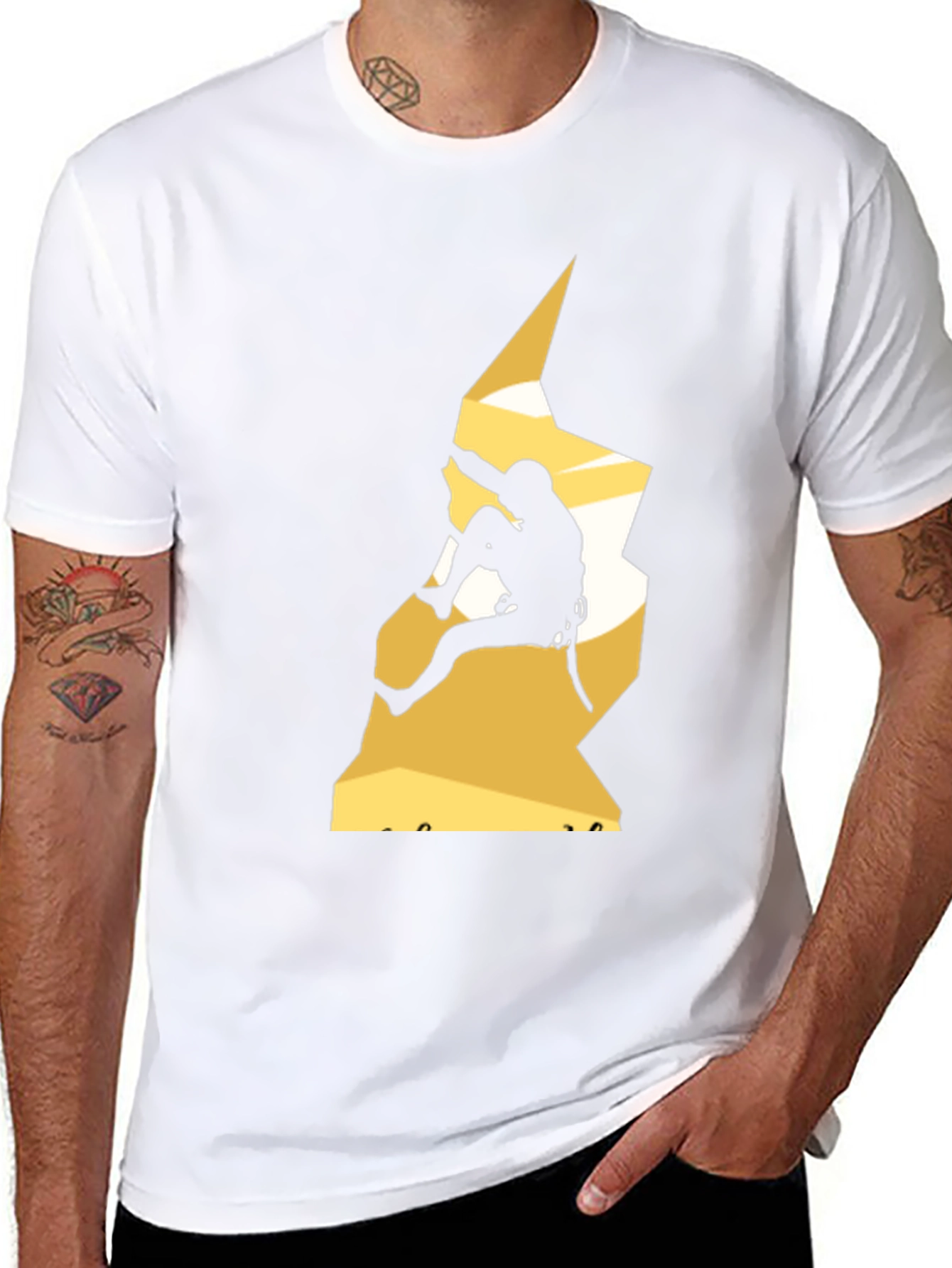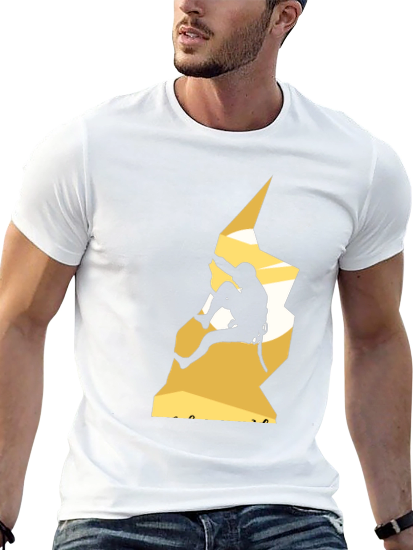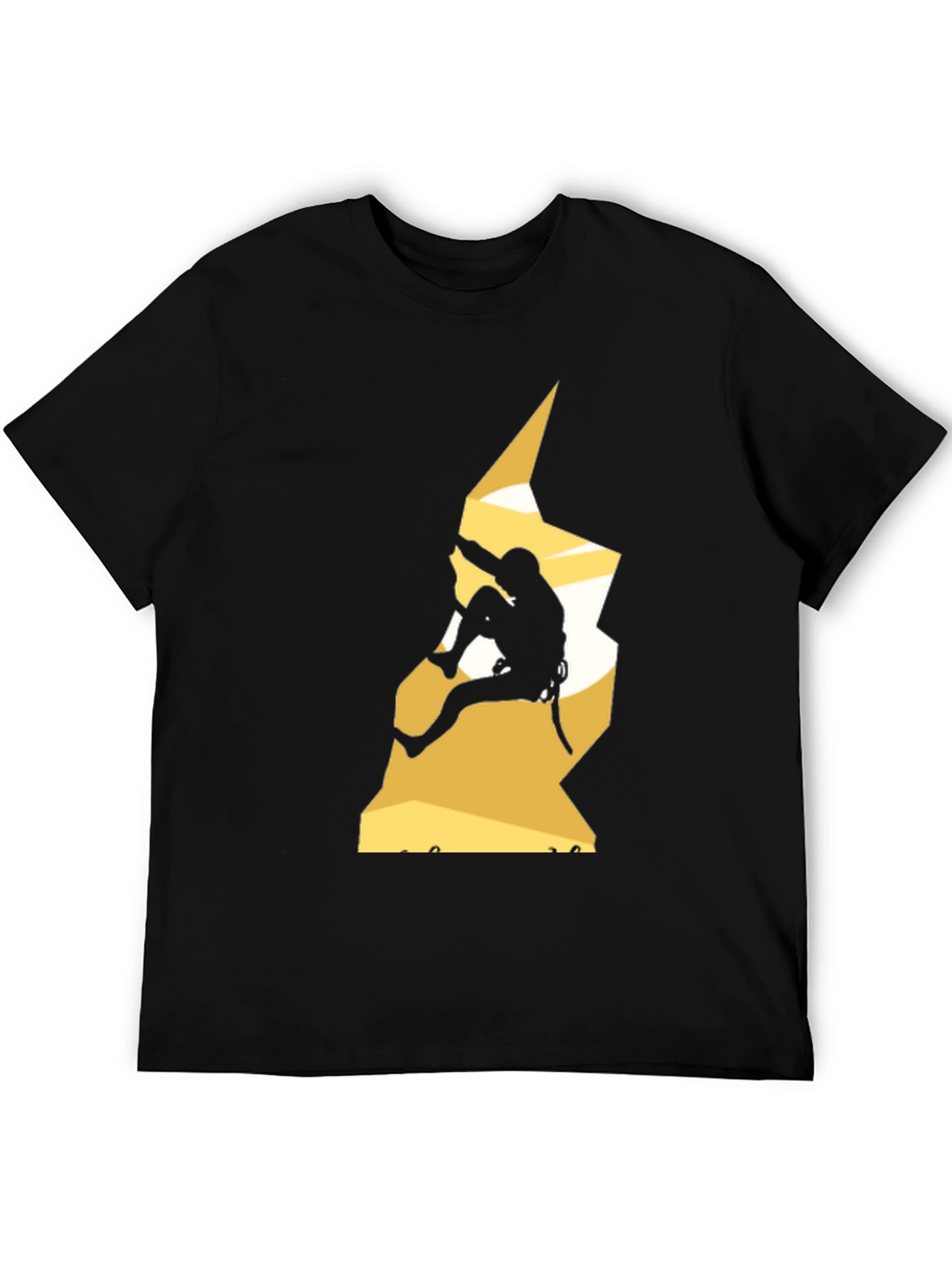 Show off your adventurous side with this stylish black t-shirt featuring a striking graphic of a rock climber against a unique backdrop. The design is eye-catching and bold, perfect for outdoor enthusiasts or anyone who loves unique apparel. Made from a comfortable-looking fabric, this tee offers a relaxed fit, ideal for everyday wear, whether you're hitting the trails or just hanging out. The classic black color ensures versatility, making it easy to pair with any outfit. Make a statement and express your passion for climbing with this awesome tee.