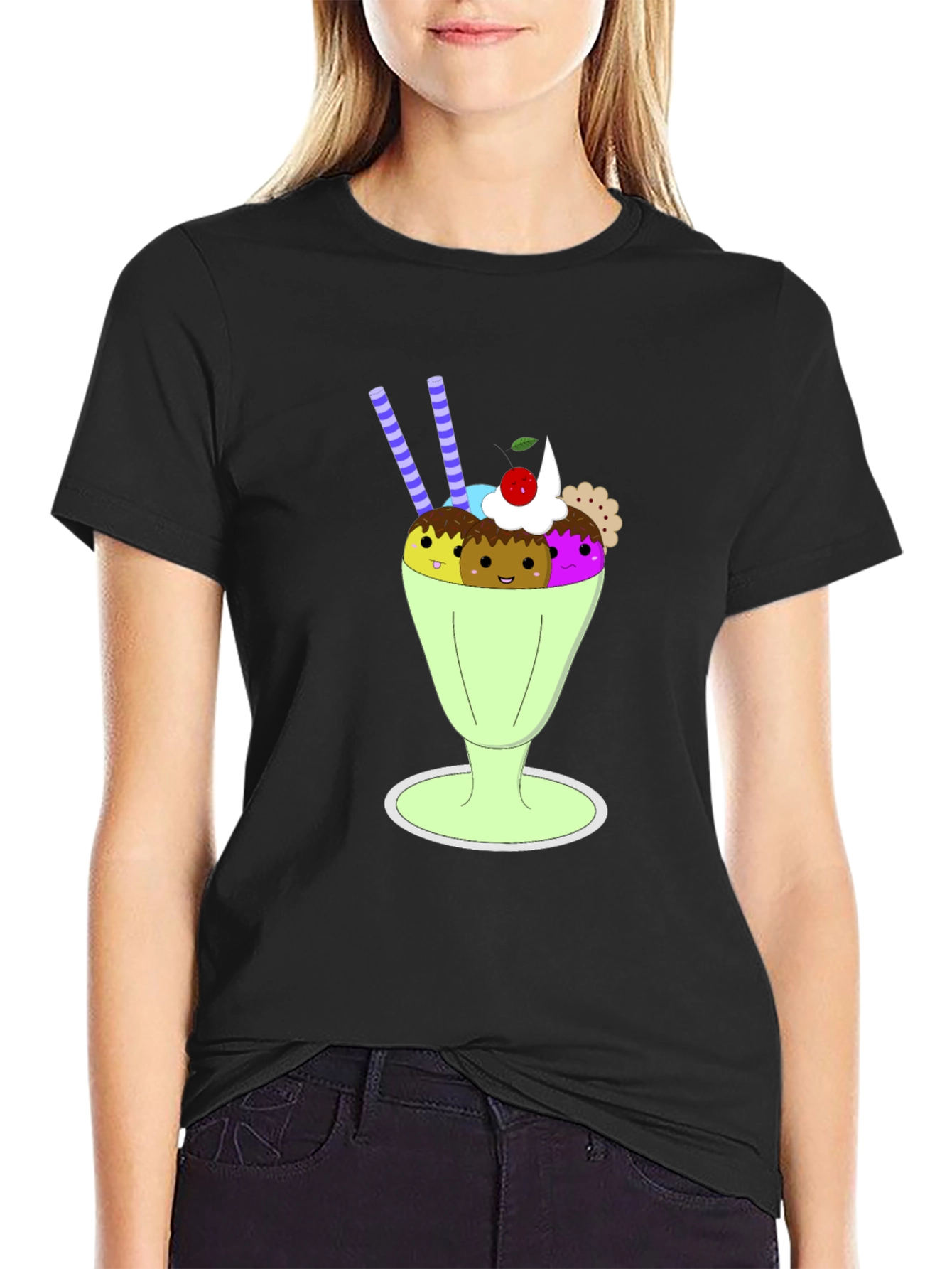 Fun Cartoon Ice Cream Sundae Graphic Tee