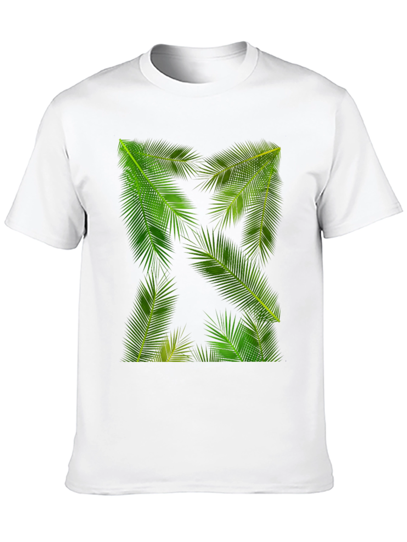 Embrace a touch of paradise with this stylish black t-shirt. The design features a vibrant, eye-catching print of tropical palm leaves in shades of green, creating a fresh and summery vibe. Made from what appears to be a soft and comfortable fabric, this tee is perfect for everyday wear. The classic fit makes it versatile for various occasions, whether you're heading to the beach, hanging out with friends, or simply adding a pop of color to your casual look. Pair it with shorts, jeans, or chinos for an effortlessly cool style. A must-have for those who love tropical aesthetics and comfortable fashion.
