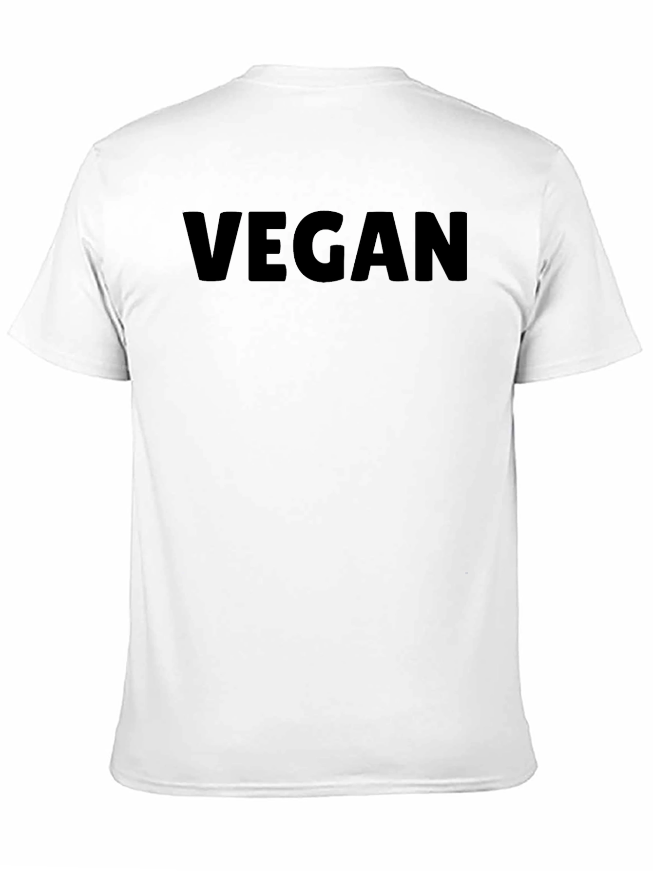Declare your lifestyle with this bold vegan statement tee. This classic black t-shirt features the word "VEGAN" printed prominently across the chest in a clean, easy-to-read font. The shirt appears to be crafted from a soft, comfortable material, making it ideal for everyday wear. Its unisex design ensures a great fit for anyone who wants to promote a plant-based lifestyle. Perfect for casual outings, vegan festivals, or simply spreading awareness, this t-shirt is a stylish and meaningful addition to any wardrobe. Show your commitment to animal rights and environmental sustainability with this essential vegan tee. Get yours today and wear your values!